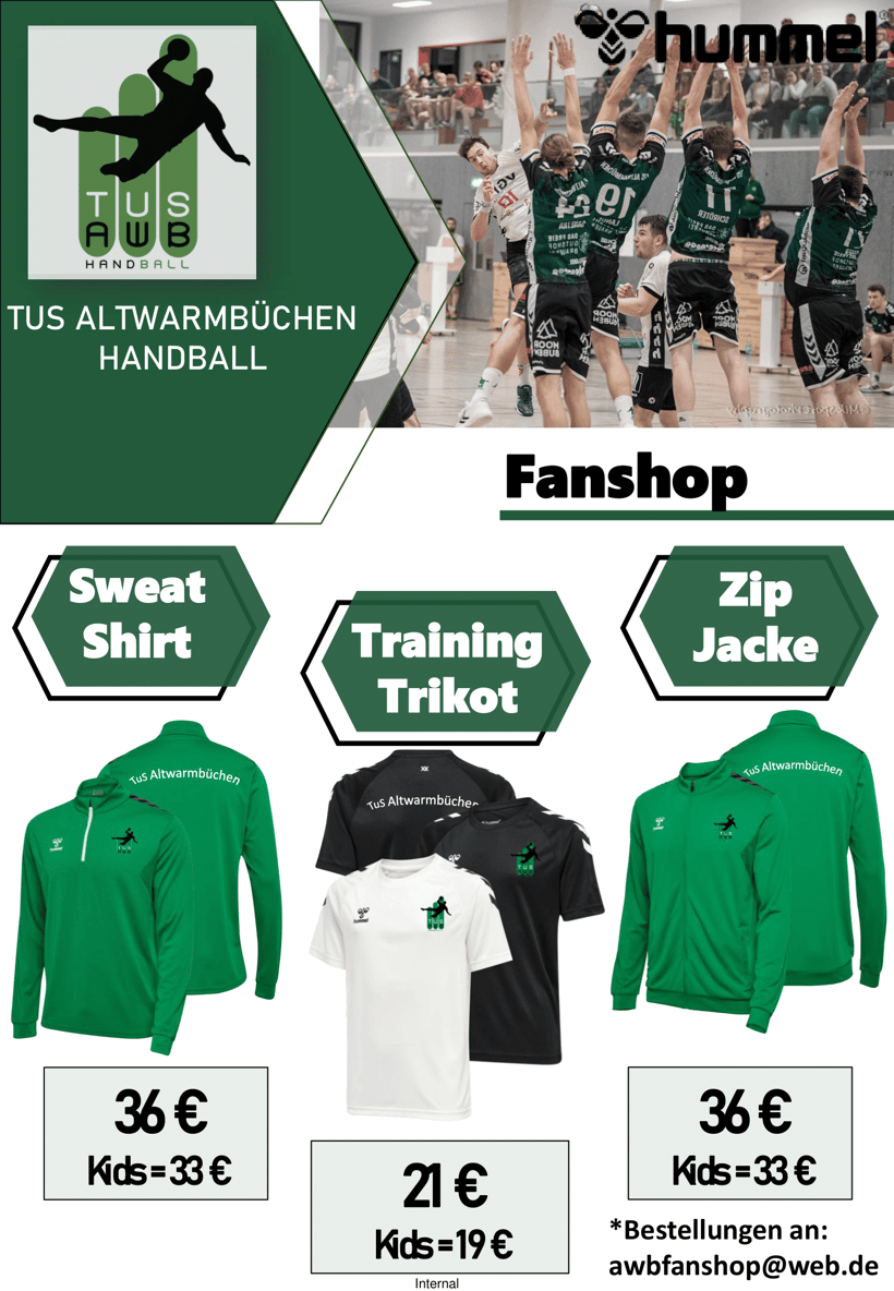 bitte schickt eure Bestellungen inkl. Größe und Anzahl per E-Mail an awbfanshop@web.de.